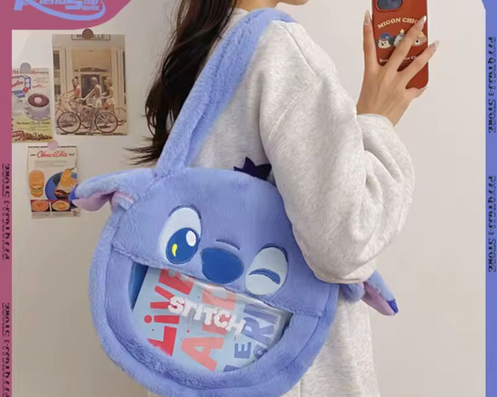 Lleva a tu personaje favorito a todos lados con este adorable bolso peludo de Stitch. Diseñado con materiales suaves tipo peluche, este bolso no solo es cómodo y ligero, sino que también añade un toque divertido y único a tu outfit.