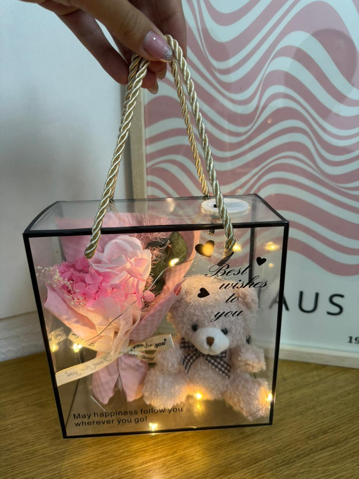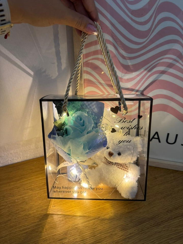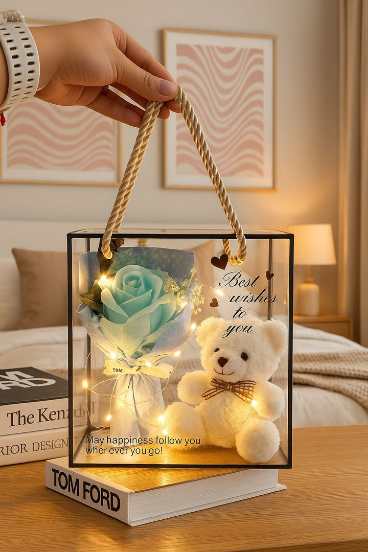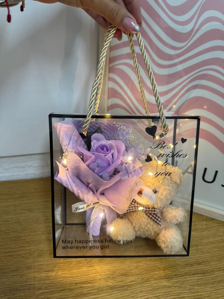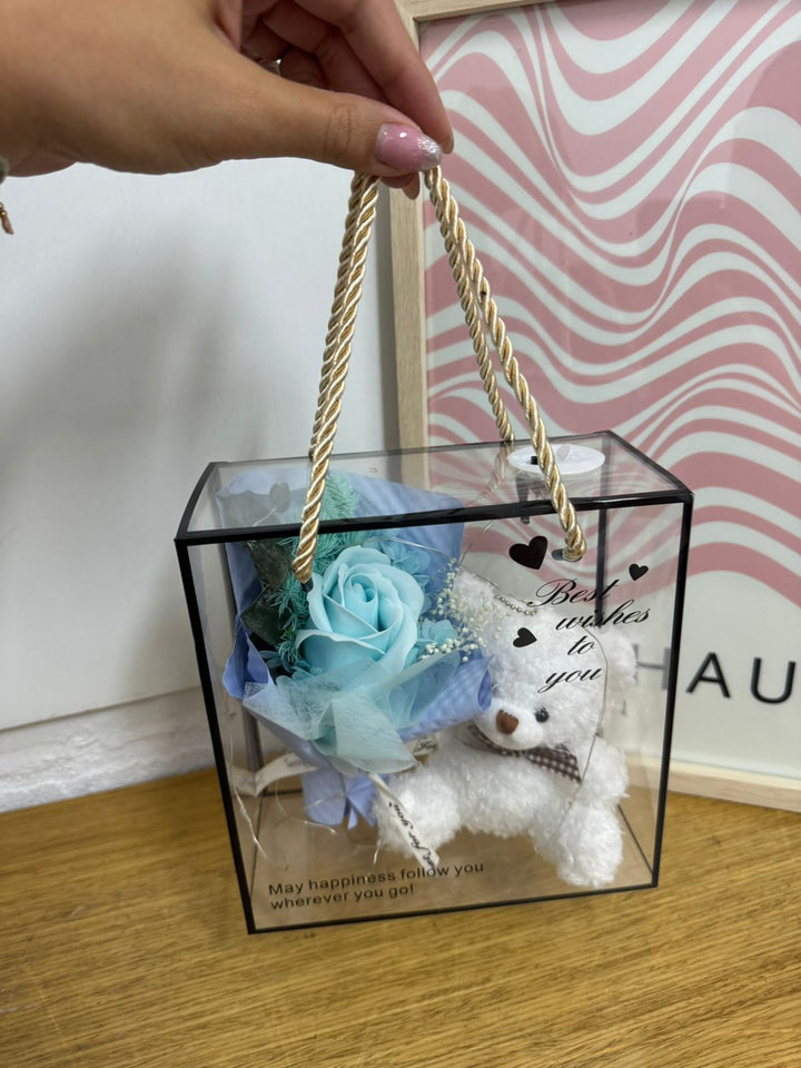 Sorprende con una presentación inolvidable: nuestra caja de acetato transparente incluye todo lo necesario para emocionar a quien la reciba. Cada elemento ha sido seleccionado con cuidado para crear un regalo especial y significativo.