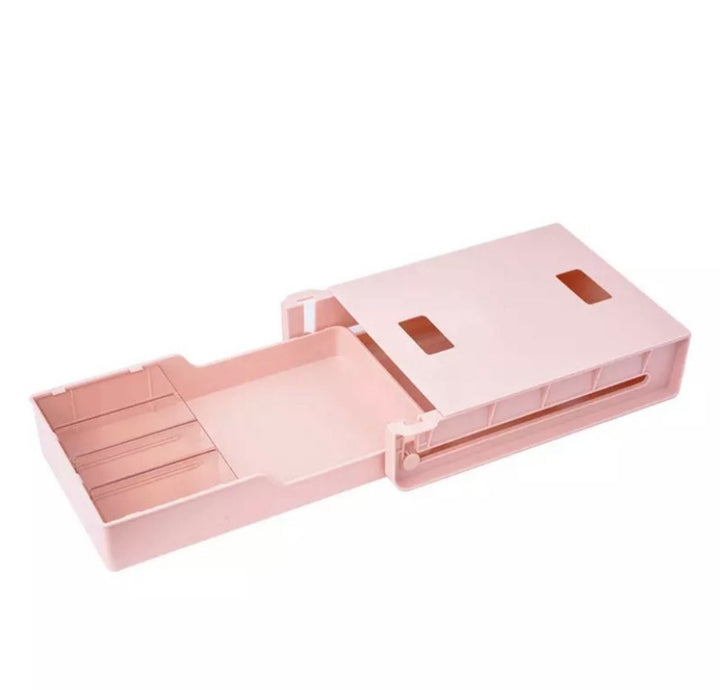 Este ingenioso cajón plegable está diseñado para integrarse discretamente en tu escritorio, ofreciendo almacenamiento oculto sin sacrificar el estilo. Su estructura delgada y casi invisible se oculta perfectamente debajo de la superficie, manteniendo un aspecto limpio y minimalista. Solo necesitas deslizarlo hacia abajo para que aparezca y puedas guardar artículos como bolígrafos, notas, cables o accesorios pequeños. Ideal para mantener tu espacio ordenado y libre de distracciones visuales. ¡Funcionalidad oculta con diseño inteligente!