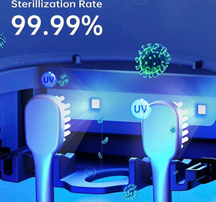 Mantén tus cepillos de dientes libres de bacterias con este esterilizador UV recargable, que elimina hasta el 99.9% de los gérmenes para cuidar tu salud bucal de forma fácil y efectiva.