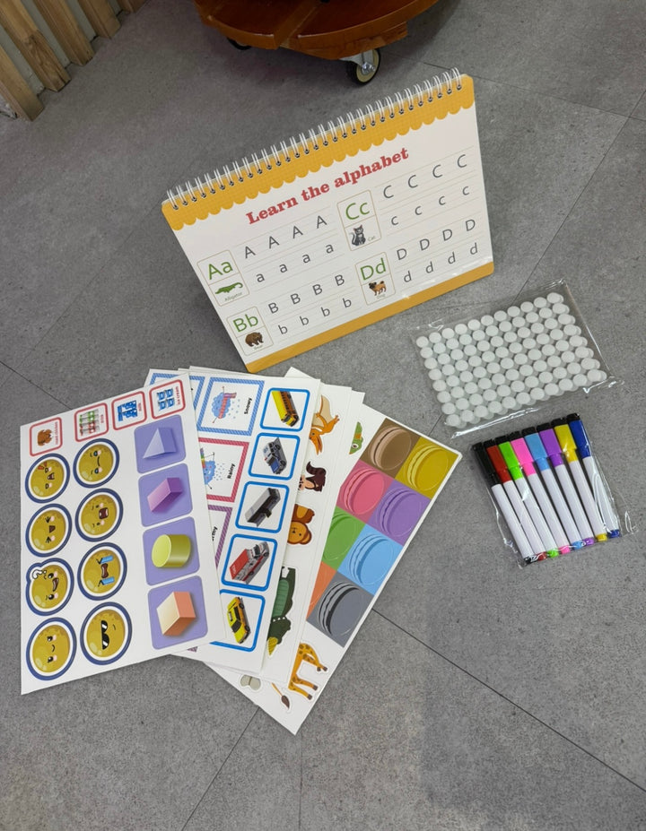 Lo mejor de todo es que el libro incluye marcadores borrables, lo que permite a los niños realizar las actividades una y otra vez, perfeccionando sus habilidades a medida que repiten las tareas. ¡Perfecto para la práctica diaria sin desperdiciar papel!