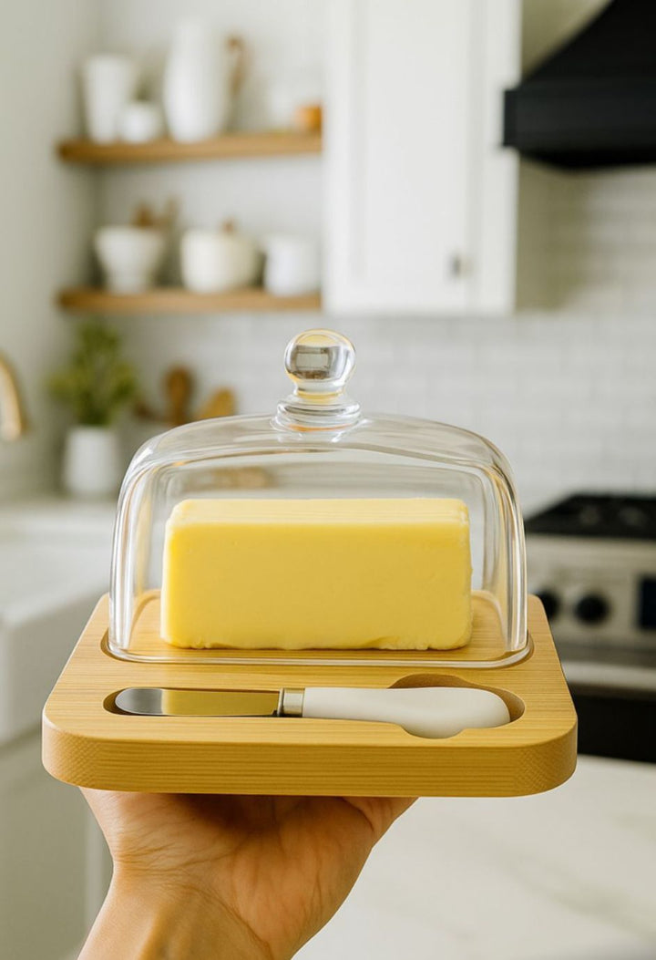 Dale un toque natural y elegante a tu mesa con esta mantequillera en vidrio con base de bambú. Su diseño práctico incluye un cuchillito con mango cerámico, perfecto para untar con facilidad. Ideal para conservar la mantequilla fresca y presentarla de forma estética en desayunos, brunch o reuniones. Un accesorio que combina estilo, funcionalidad y buen gusto.