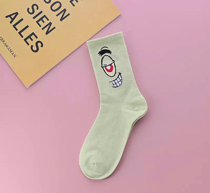 ¡Sumérgete en Fondo de Bikini con estilo! Estas divertidas medias largas con diseños de los personajes más queridos de la familia de Bob Esponja son perfectas para darle un toque único y colorido a tu outfit.