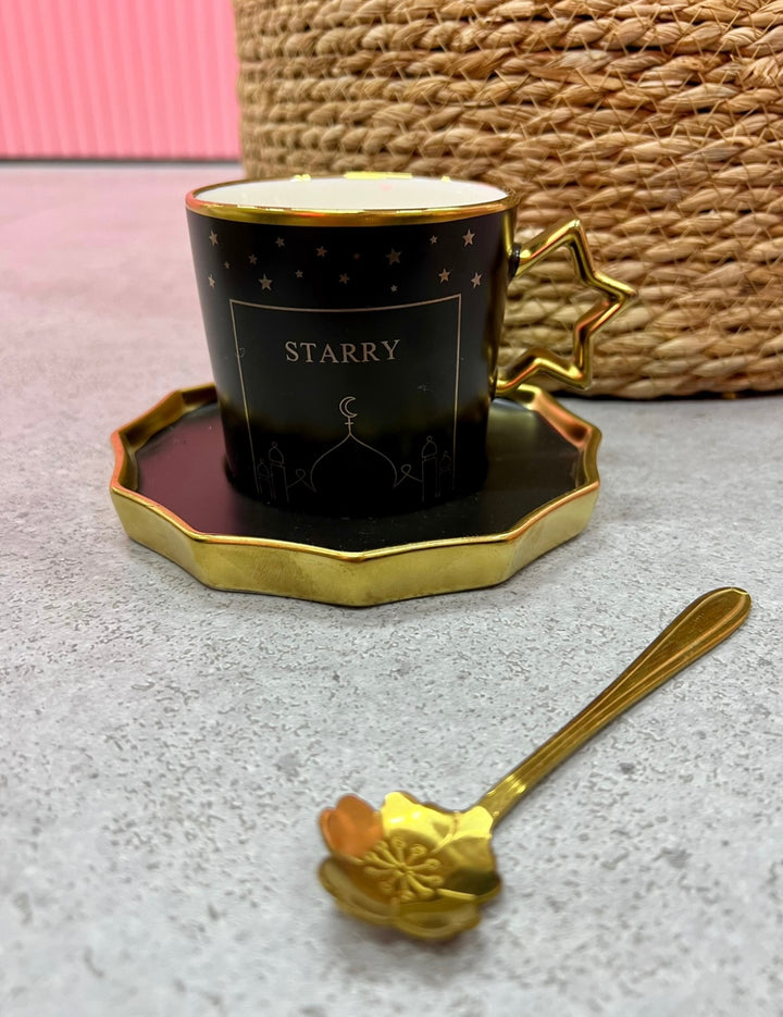 Descubre la elegancia en cada detalle con nuestro exclusivo set de mug, plato y cuchara, diseñado para quienes aprecian el buen gusto. Este conjunto sofisticado presenta un delicado borde dorado que realza su diseño clásico y refinado, perfecto para tus momentos de café o té.