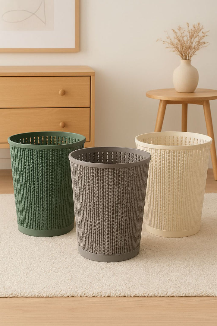 Organiza tus espacios con esta papelera de diseño moderno y textura tipo tejido. Fabricada en material de pasta resistente, es perfecta para oficinas, habitaciones, estudios o baños.
