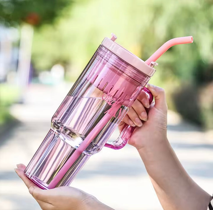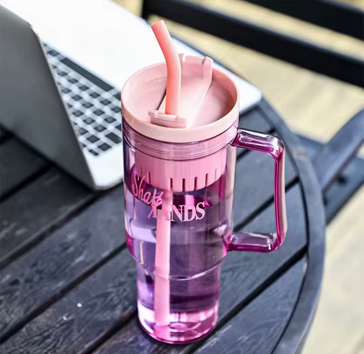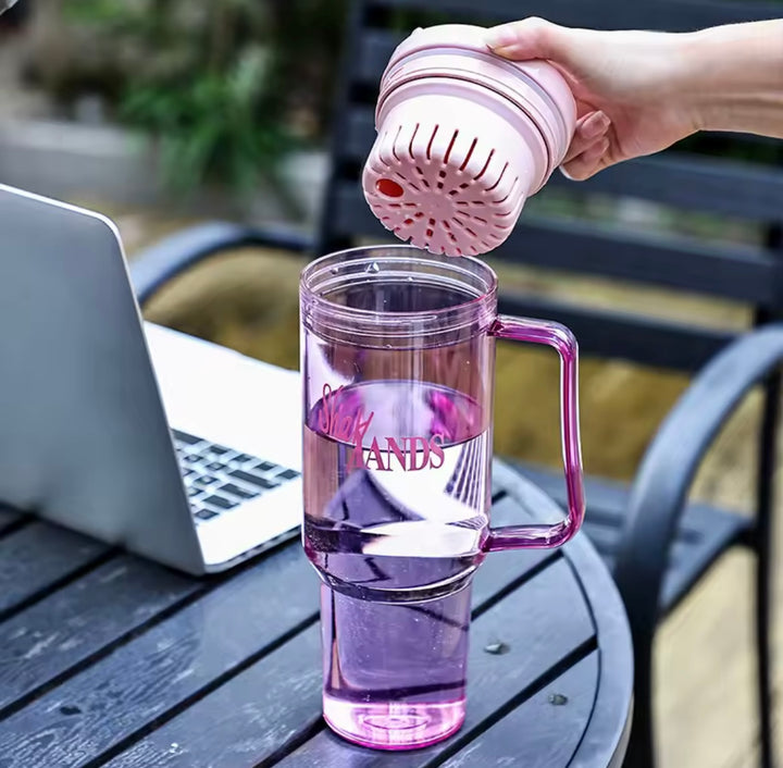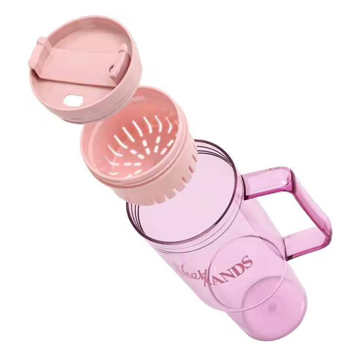 Este termo combina estilo y funcionalidad con su diseño moderno y fresco en pasta transparente con detalles en rosa pastel. Perfecto para quienes buscan una botella ligera y práctica, cuenta con un difusor integrado que permite disfrutar tus infusiones favoritas o bebidas con frutas sin que se mezclen los sólidos. Ideal para mantener tu bebida fresca y libre de residuos, este termo es tu mejor aliado para el día a día, en la oficina, gimnasio o paseos al aire libre.